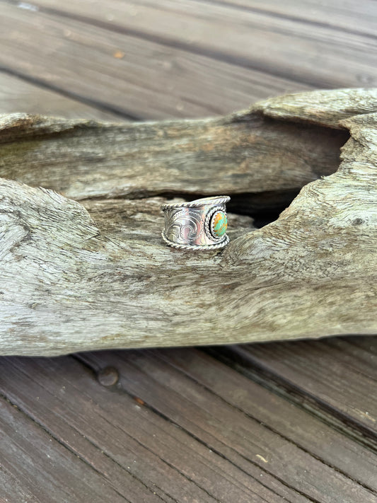 Sterling Engraved Ring with Kingman Turquoise (Sz. 9-1/2 Adj.)